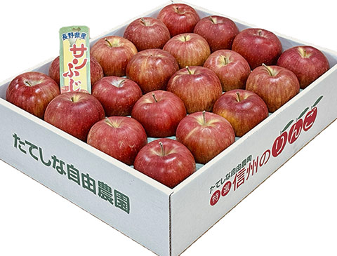 蜜がいっぱいで、甘味・酸味・歯ごたえの三拍子が揃った信州産の人気品種 特選サンふじのギフトセットをご用意いたしました。